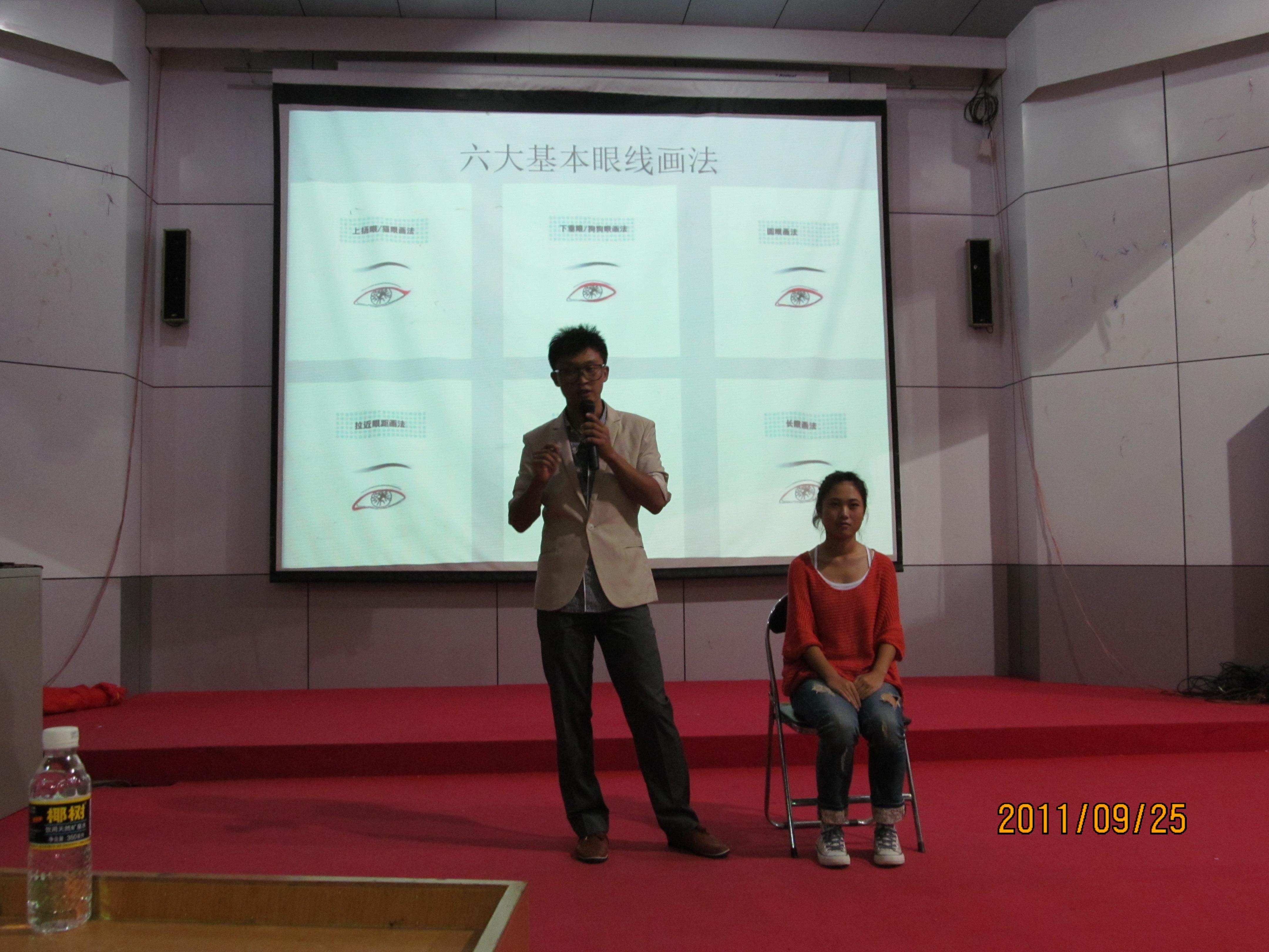 本次讲座首先由嘉宾09生物技术的陈飞即MAC新锐化妆师花野“老师”为同学们介绍化妆的基本内容和技巧,并邀请模特做现场演示,并设现场互动环节,在座同学积极参与,形成良好的现场气氛。接下来由学院学生会女生部副部长李绍晶同学为大家介绍了文明礼仪的基本知识,并强调了文明礼仪的重要性。活动在同学的欢呼和掌声中圆满结束。