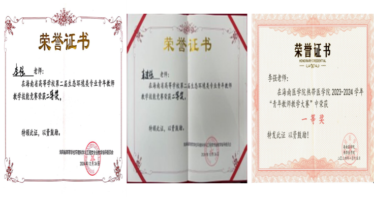 专业积极为青年教师搭建教学能力提升平台,鼓励他们参与校级、省级各类教学培训与竞赛,斩获学院青年教师教学大赛一等奖、海南省高等学校第二届生态环境类专业青年教师教学技能竞赛二等奖等多项荣誉。