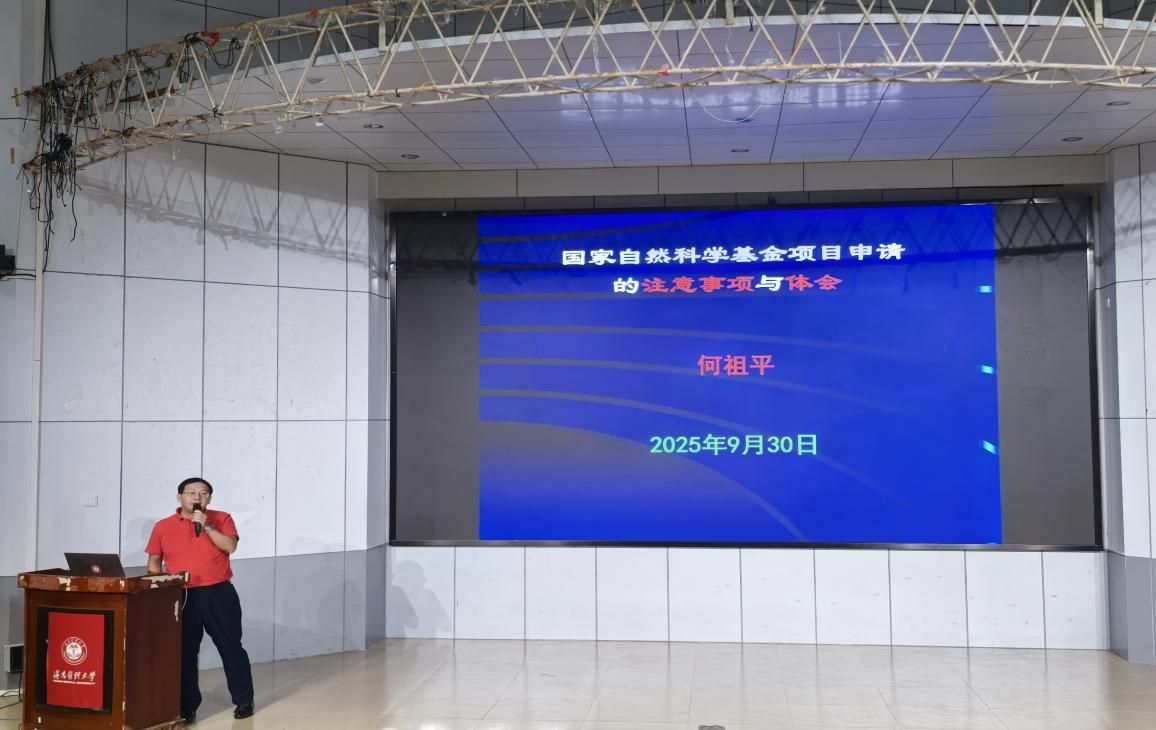会议最后,院长何祖平作总结讲话。院长何祖平结合其自身丰富的经验,作了高屋建瓴的动员讲话。他深入分享了国家自然科学基金项目申请的注意事项与深刻体会,重点阐述了成功申请的三个关键要素:创新性、重要性和必要的工作基础。他详细解析了项目评审的侧重点,并针对申请书的撰写提出了关键性指导。