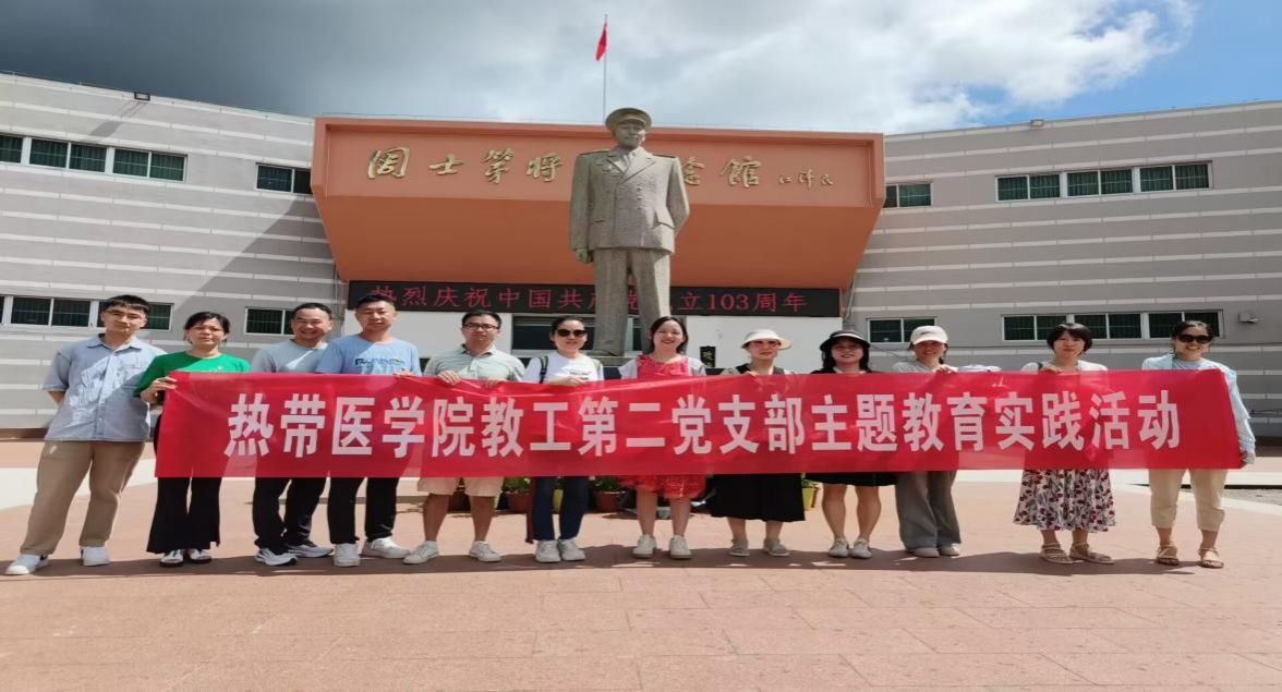 为深入学习党的光辉历史,传承红色基因,强化党员身份意识与使命担当,7月6日,热带医学院教工第二党支部前往琼海市,分别参观了红色娘子军纪念园与周士第将军纪念馆,开展了一场别开生面的主题党日活动。此次活动不仅是一次对革命历史的回望,更是一场心灵的洗礼与思想的升华。