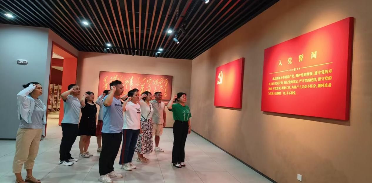 参观时,党员们面对党旗,进行了庄严的入党宣誓。他们紧握右拳,眼神坚定,誓言响彻云霄:“我志愿加入中国共产党,拥护党的纲领,遵守党的章程……为共产主义奋斗终身,随时准备为党和人民牺牲一切,永不叛党!”这一刻,他们不仅是在向党组织表达忠诚,更是在向历史、向未来宣誓,将用实际行动践行入党誓词。