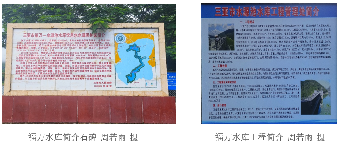 福万水库1978年8月竣工,总库容1034万立方米,水库主要任务是城市供水,年供水700万吨。水源池水库1988年3月竣工,总库容1490万立方米,水库主要任务是城市供水,设计年供水量1250万吨。福万水源池水库位于三亚河流域中上游地区,地处三亚市中北部凤凰镇的抱前、台楼、六罗区域。该水库具有防洪、灌溉、城市供水和发电等综合效益,担负着下游三亚市、天涯区、海坡开发区等沿河两岸的25万人口、1万亩农田及绕城高速路、西环高铁等基础设施的防洪任务。
