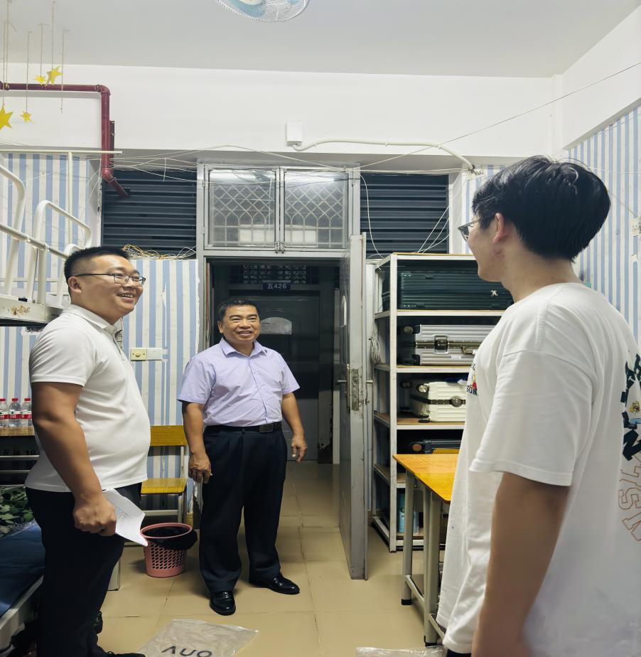 8月26日晚间,党委副书记黄泽云、新生辅导员们以及学院学生组织干部,走访24级新生宿舍,关心学生入住情况和困难,了解学生诉求。老师们的到来让初入校园的新同学们感受到了学院的关怀与温暖。在宿舍中,黄泽云副书记与新生亲切交谈,询问他们对新环境的适应情况,鼓励他们尽快融入大学生活,努力学习专业知识。