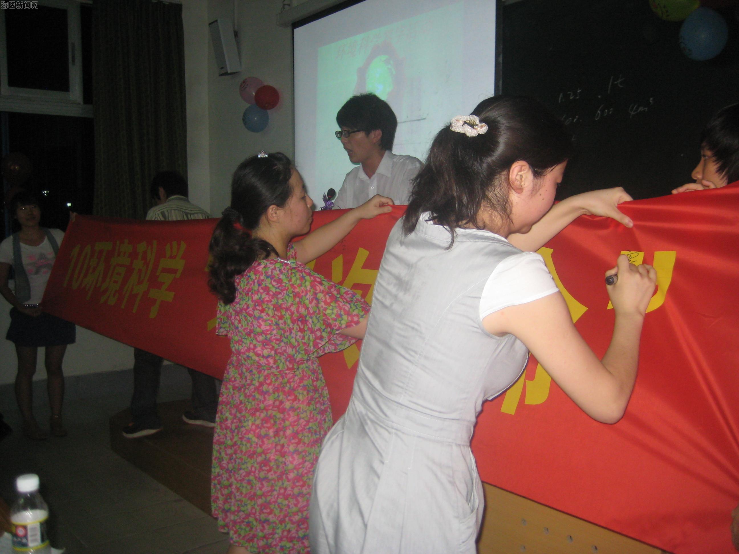 最后,吕刚副院长对活动进行简明扼要的点评,并寄予了厚望和大力支持。同时,老师和同学们在活动横幅上签字,承诺加入本活动行列中来,从身边做到环保并宣传环保。相信通过本次活动,同学们会积极投身于环保公益事业中来,让环保的理念渗透taptap点点校园乃至更多的地方和人群。