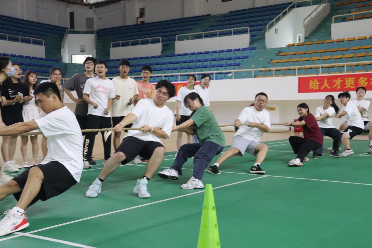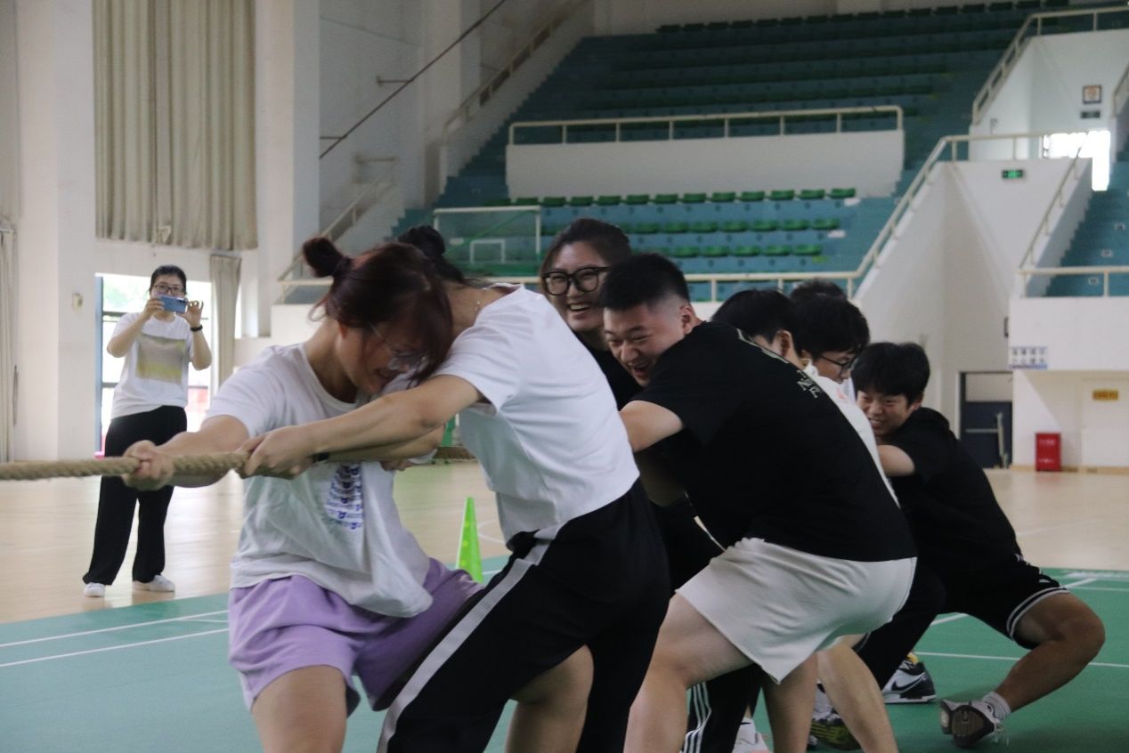 比赛过程精彩纷呈,扣人心弦,同学们积极参与、顽强拼搏,用实际行动展现了团队协作的风貌。从三尺讲台,到绿茵赛场;从务实严谨,到激情飞扬,老师们也在紧张的工作之余适时锻炼了身体。在两人三足中,有两位女选手不慎摔倒,看台上和场边的观众都用掌声鼓励她们,两位女选手也迅速起身,坚持到了终点。袋鼠跳项目考验选手们的协调能力,大多数选手都能稳中求胜。而在拔河比赛中,上阵的选手们使出浑身解数,展示了师生一心、团结协作、凝心聚力的精神。观众们的心弦紧紧地扣在红绳上,紧张而又激动,他们的呐喊声也充斥了整个体育馆,鼓舞着运动员们。最后,21卫检以26分排在积分榜首位拿下了本次趣味运动会的一等奖。