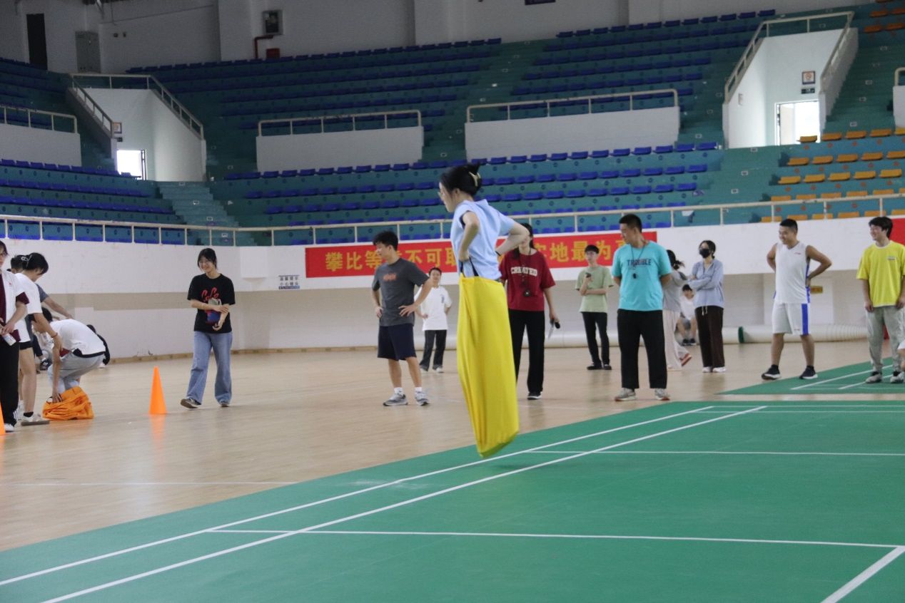 初夏绽芳华,运动添风采。为丰富热院全体师生的课余文化生活,增强同学的团结协作精神,使师生之间可以更好地联络感情,并能够从中锻炼身体、获得快乐,热带医学院学生会于2023年5月7日中午,在宋子文体育馆举办趣味运动会。参加此次趣味运动会的有热带医学院党委黄泽云副书记、教学办主任吴洁老师、辅导员李恩鹏老师、辅导员郭小慧老师、班主任乔斌老师、郑卫青老师、辜建强老师、蔡群芳老师、还有22级和21级的各班同学们。此次趣味运动会主要包括三个项目:两人三足,袋鼠跳和拔河。随着主持人宣读完主持词,比赛正式开始。