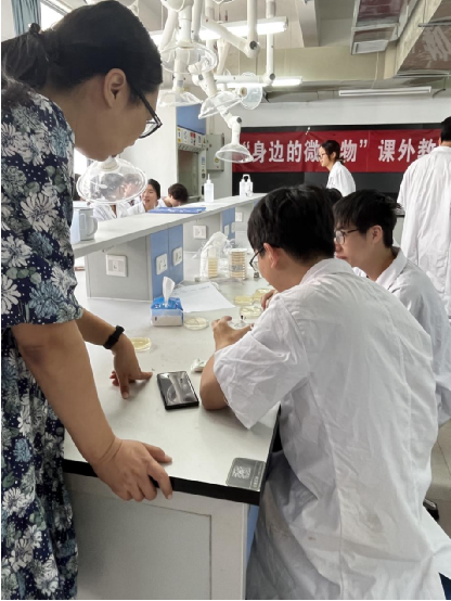 这次课外教学活动充分体现以学生为主体的学习理念,同学们自行分组,自行登记培养基编号、个人信息及培养物信息,以身边常见污染物为主要测试样本,从无菌操作,到不同物体表面的接种技巧,充分开动脑筋,发挥动手能力。这次比赛真正做到了考核指标“多位一体”、考核内容“丰富多样”、考核形式“立体全面”和考核宗旨“理论实践结合”。