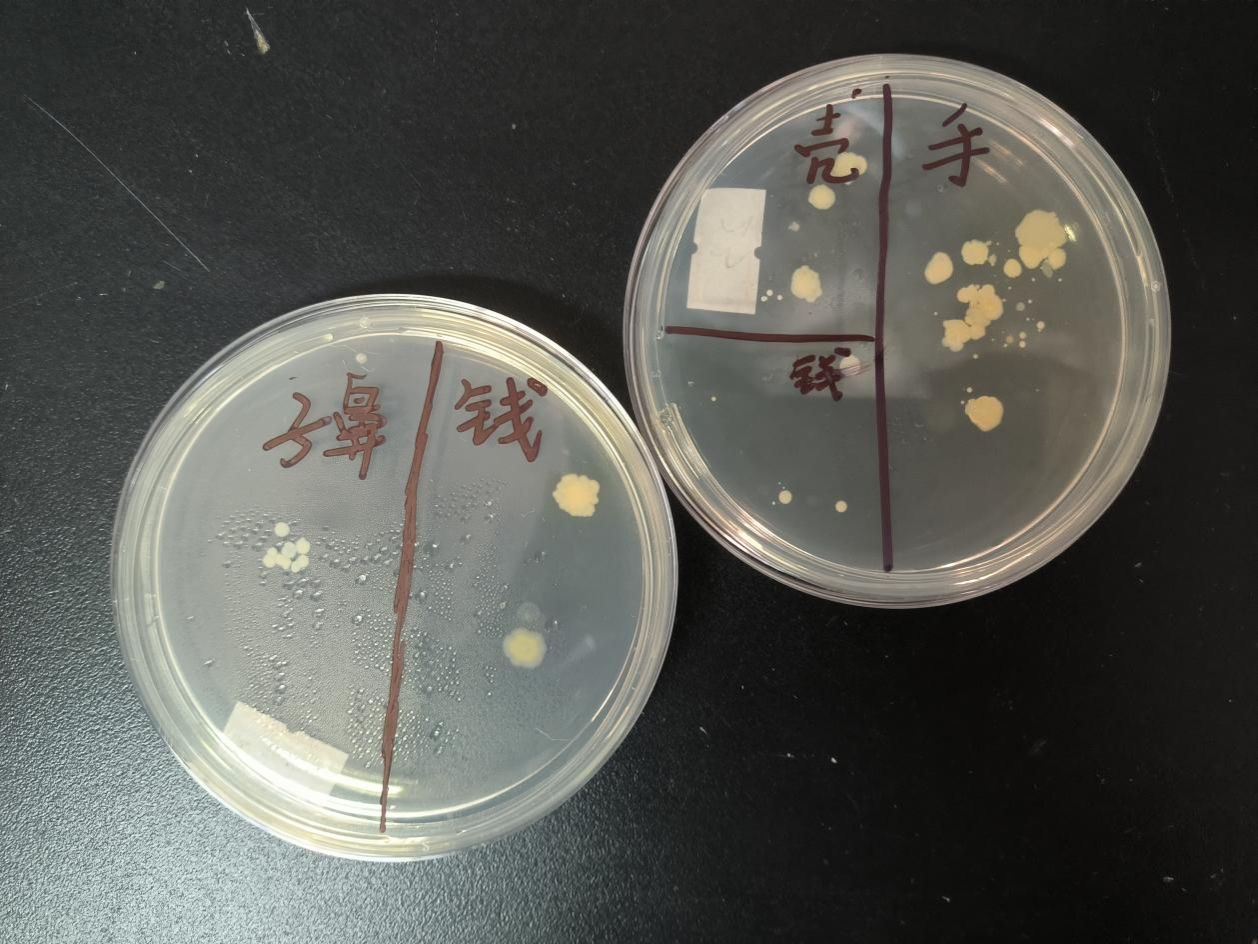 在活动过成中,同学们实际关注到无菌操作的各个环节,实验样本基本无污染。同时手脑并用,能在有限的无菌距离内借助工具完成各种形状物体表面的接种,提高了实验技能和解决实际问题的能力。现场实验结束后,我们对接种的微生物进行了培养。发现手机、眼睛、纸币上的细菌较多,袜子上真菌较多。我们将实验结果反馈给参加活动的同学,加强学生在生活中的卫生观念。