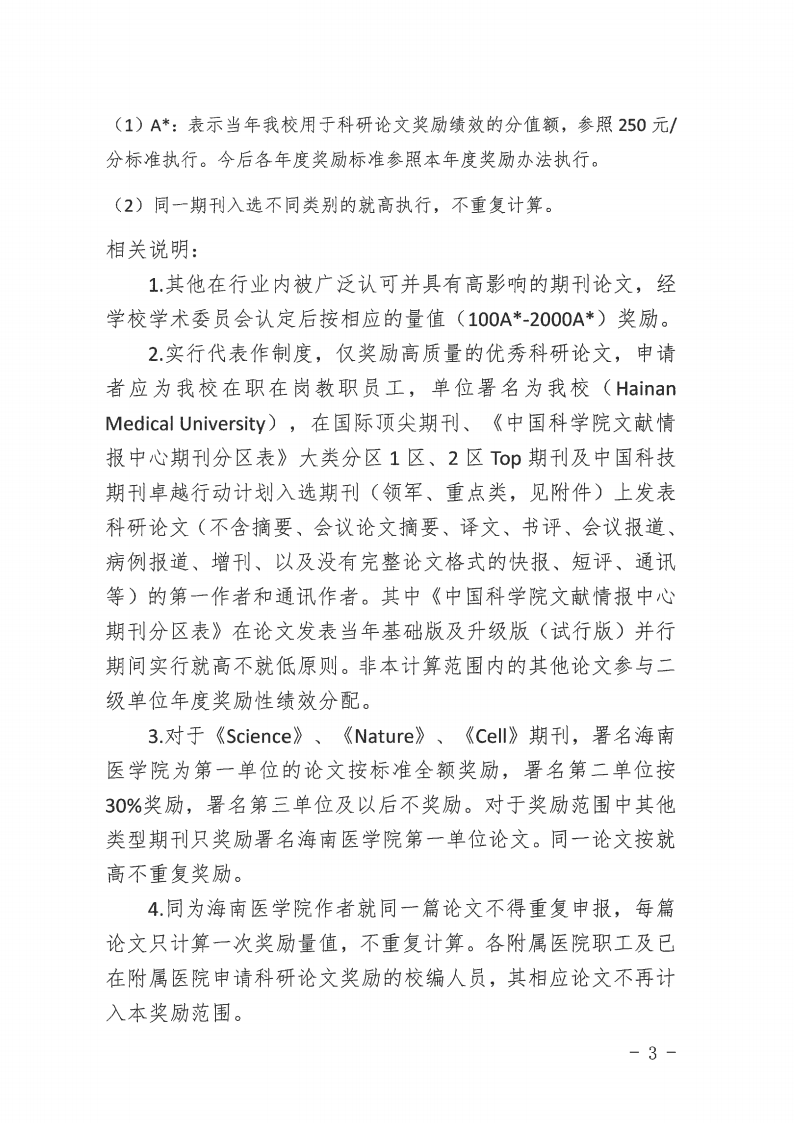 6.给予奖励的论文须是在正式期刊上发表的论文。论著类(article)按奖励标准的100%计算;综述类(review)或其他具有完整论文格式类的通讯按论著类相应奖励标准的50%计算。