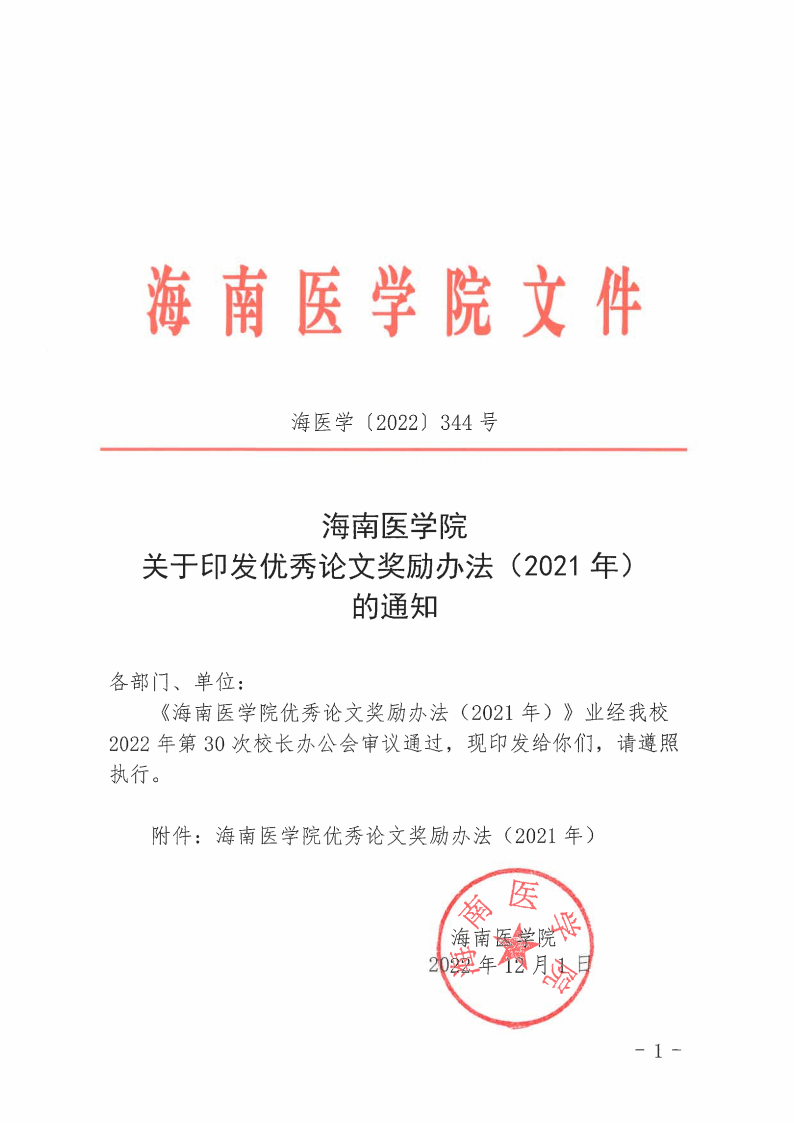 海南医学院院长办公室 2022年12月1日印发