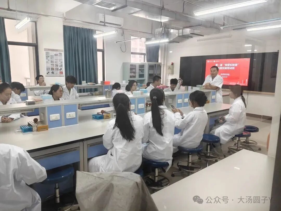 2024年9月18日,为了顺应学校更名医科大学教育改革发展进程,更好地提质增效,服务教学,支持学生早进实验室、早进课题,提高本科教育水平及实验教学的规范性,切实解决低年级本科生知识面狭窄与能力不足的问题,热带医学院教学实验中心面向2024级医学检验专业本科生举办“我爱实验室”实验技能培训班。