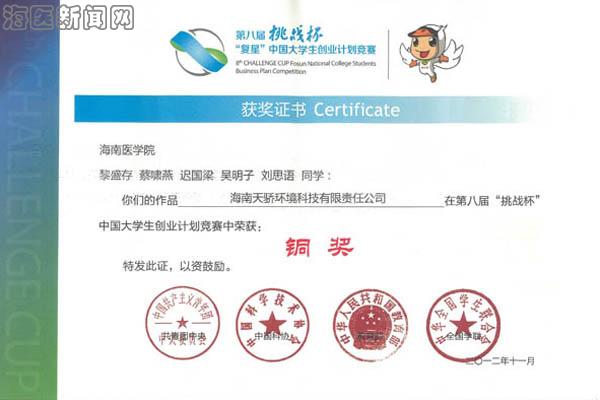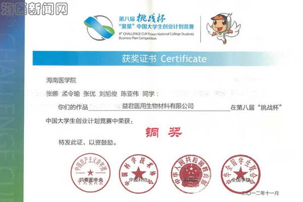 近期,第八届“挑战杯”中国大学生创业计划竞赛结果出炉,taptap点点两件作品《海南天骄环境科技有限责任公司》(作者:黎盛存、蔡啸燕、迟国梁、吴明子、刘思语)和《益君医用生物材料有限公司》(作者:张娜、孟令瑜、张优、刘旭俊、陈亚伟)获得铜奖。