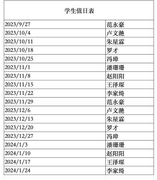 2023年秋季学生实验室值日安排