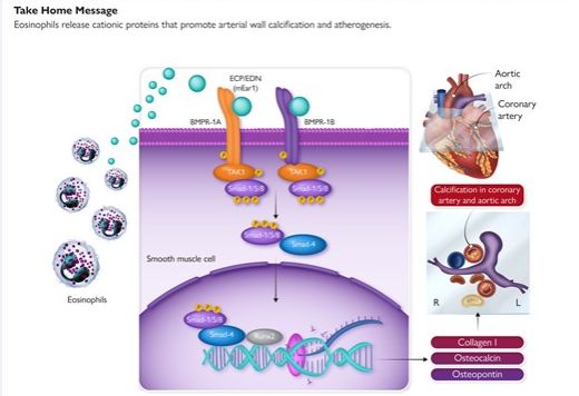 最后证实嗜酸性粒细胞通过 BMPR-1A/1B-Smad-1/5/8-Runx2 信号通路释放阳离子蛋白,促进 SMC 钙化和动脉粥样硬化形成。