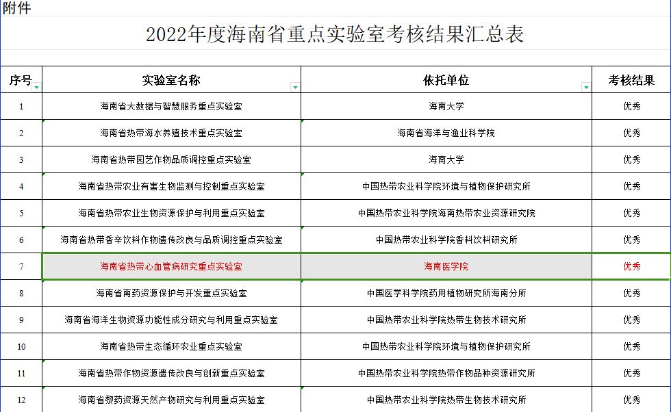 根据《海南省重点实验室管理办法》(琼科规〔2022〕24号),经专家组评审、厅务会审议、厅党组会审定等程序,2022年度海南省重点实验室考核结果。海南省热带心血管病研究重点实验室2022年获得海南省科学技术厅考核优秀。