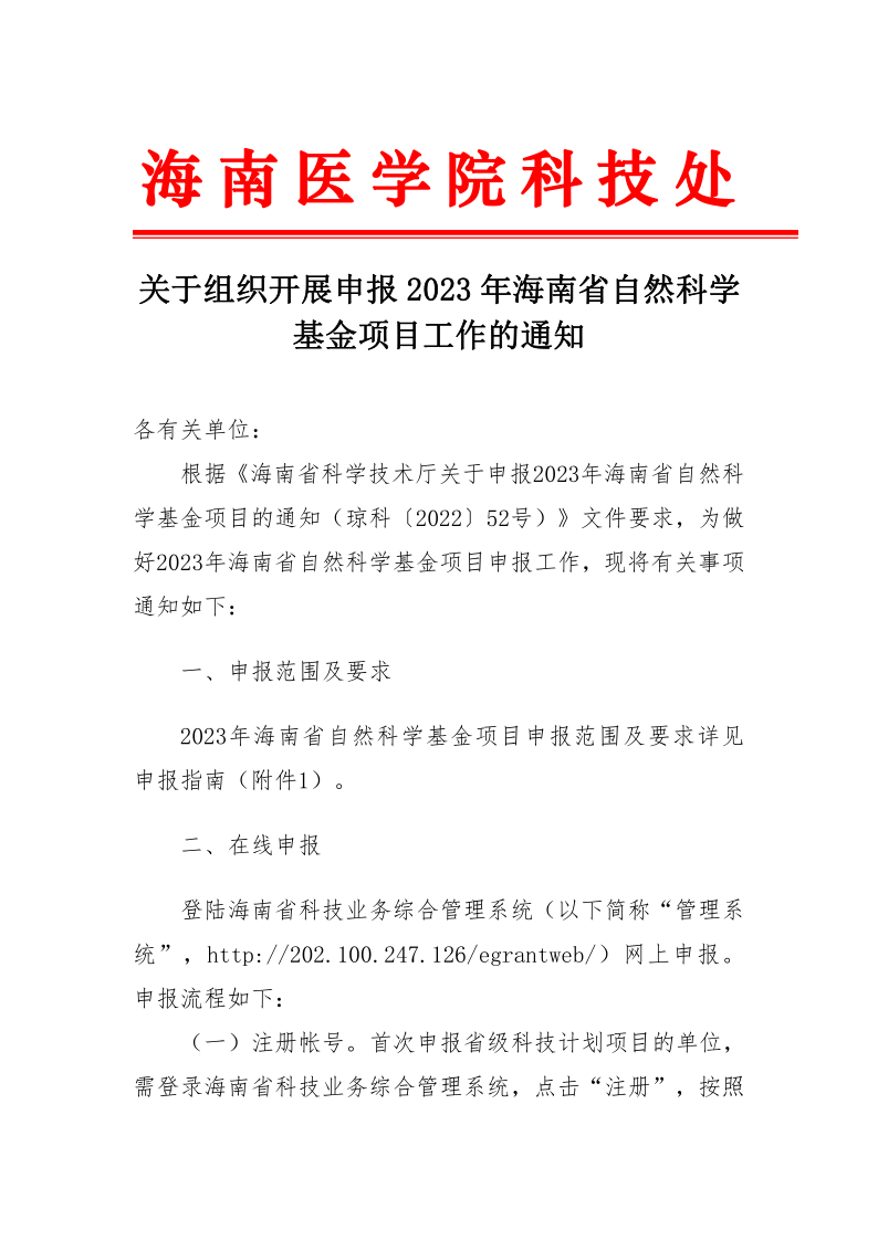 关于组织开展申报2023年海南省自然科学基金项目工作的通知-校内通知(1).pdf