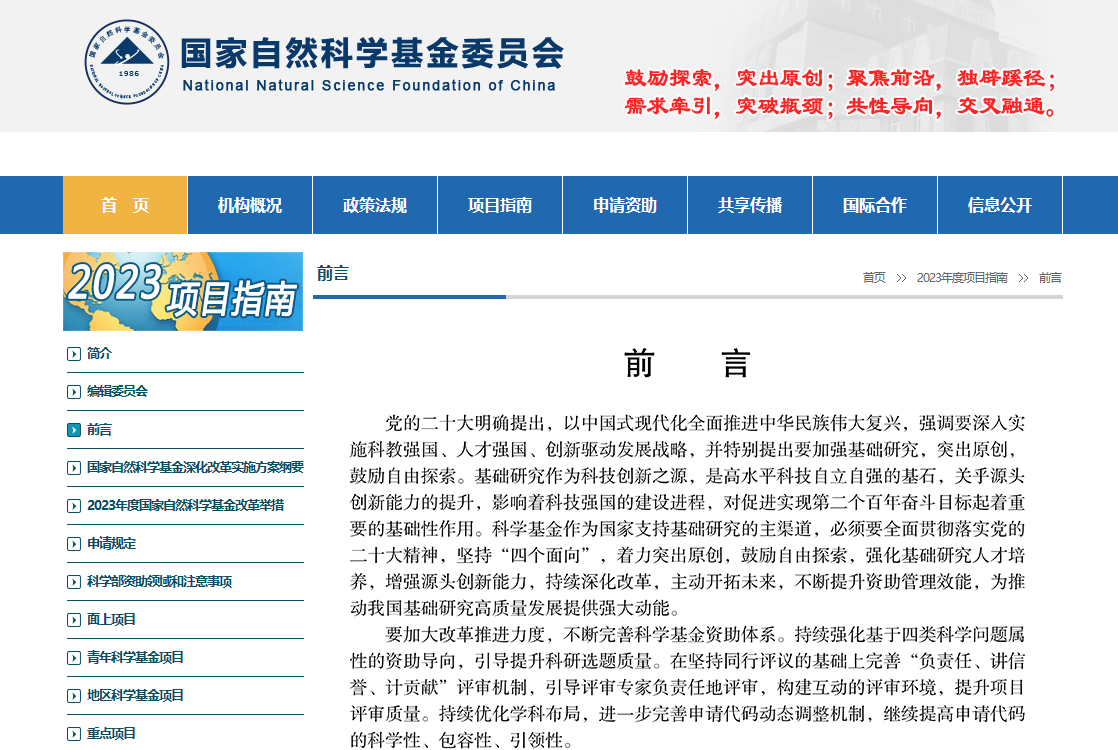 2023年度国家自然科学基金项目指南