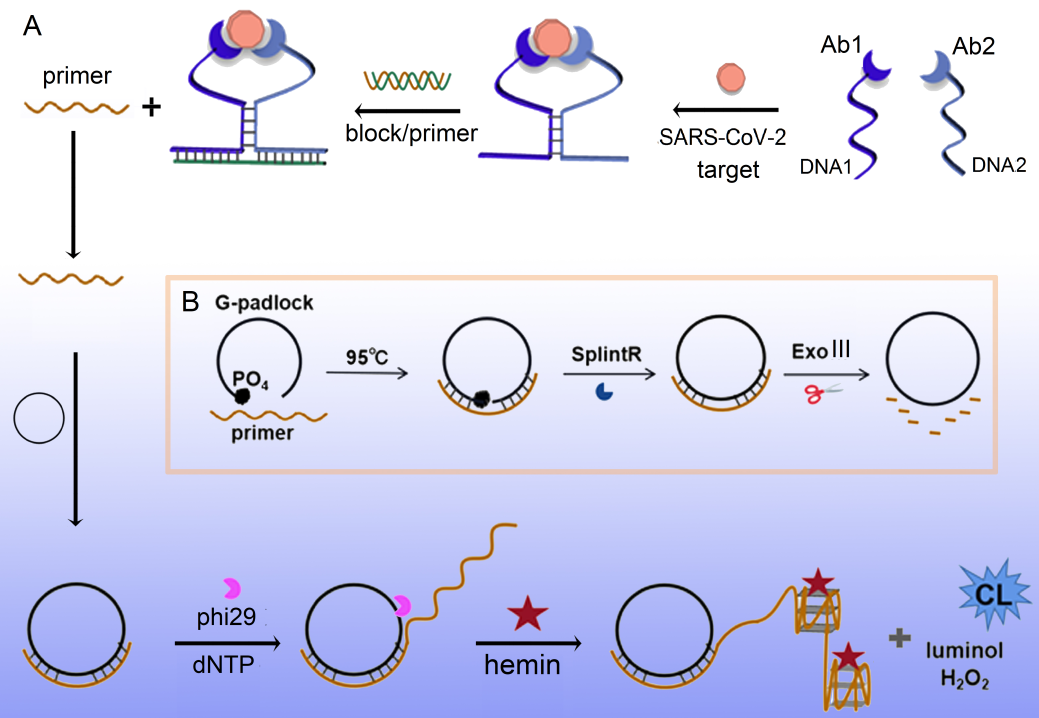 基于免疫诱导邻位激发滚换扩增(RCA)生成 DNAzyme检测SARS-CoV-2 N蛋白示意图