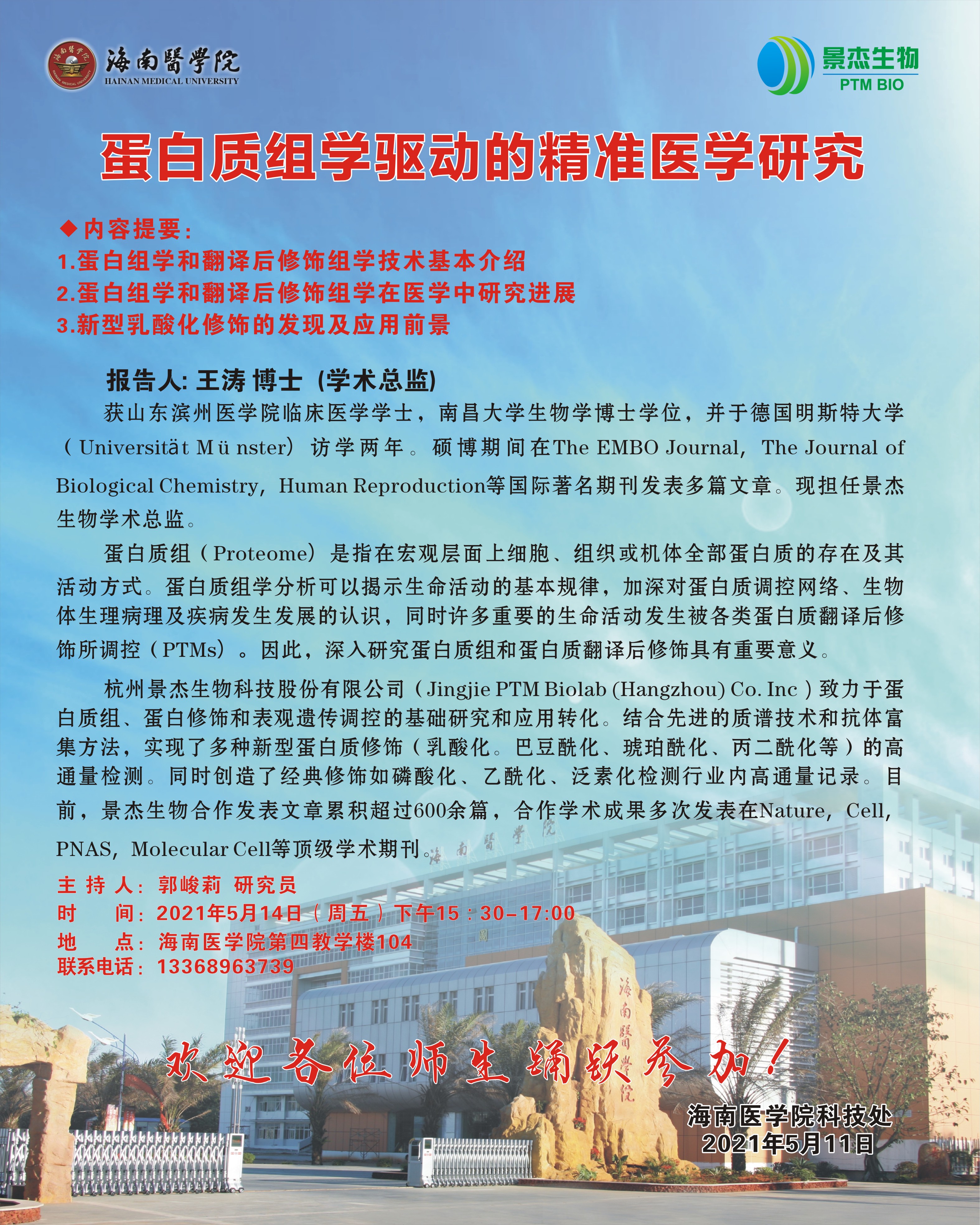 关于举办学术讲座“蛋白质组学驱动的精准医学研究”的通知