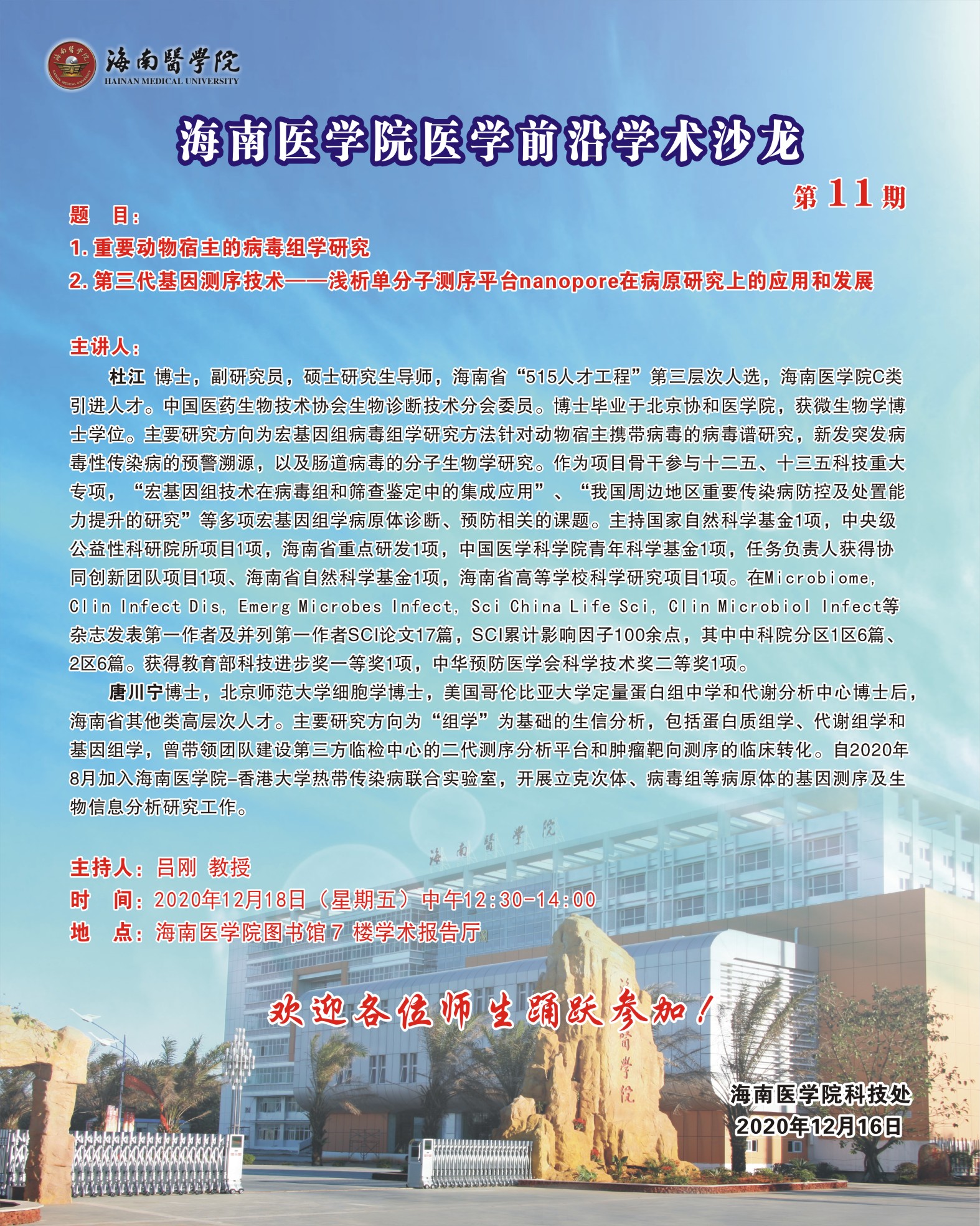 关于举办海南医学院医学前沿学术沙龙第11期的通知