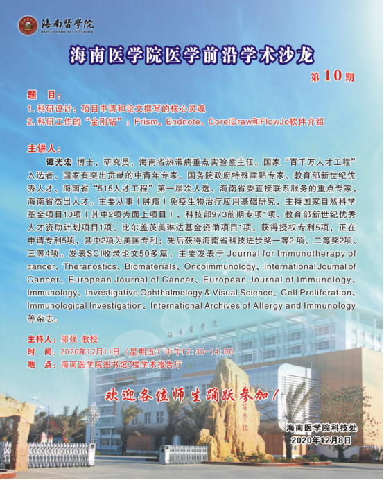 关于举办海南医学院医学前沿学术沙龙第10期的通知