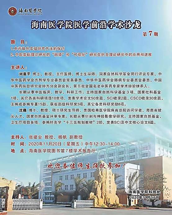 关于举办海南医学院医学前沿学术沙龙第7期的通知