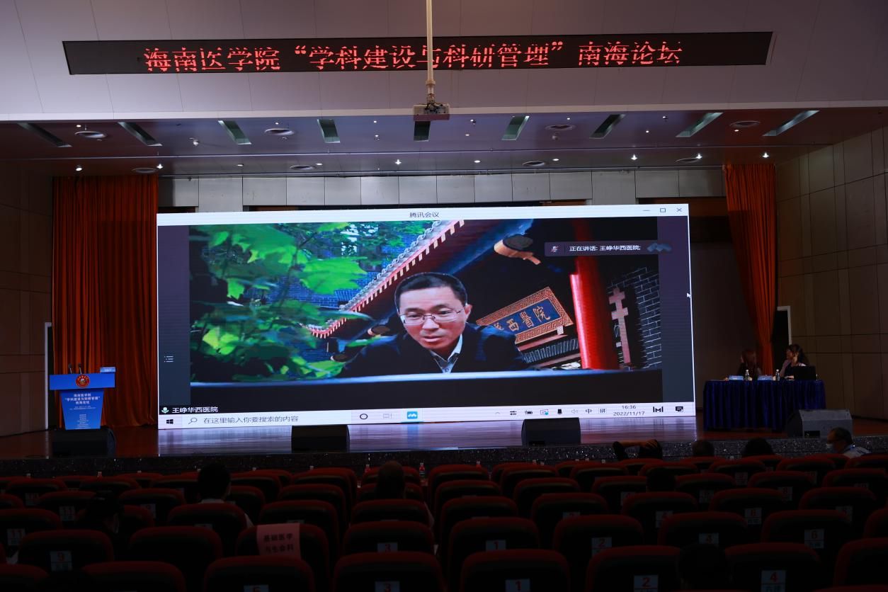 为深入贯彻落实党的二十大精神,助力海南自由贸易港医药卫生领域事业发展,提升海南医学院学科建设与科研管理水平,加快推动建设热带特色鲜明的高水平医科大学,海南医学院于2022.11.17下午,在海南医学院国际报告厅举办海南医学院“学科建设与科研管理”南海论坛,特邀多家国内高水平医学院校学科、科研管理负责人及学术、临床专家到taptap点点出席“学科建设与科研管理”南海论坛并对相关工作进行指导。本次论坛由海南医学院主办,国药器械海南公司支持,海南医学院科技处、发展规划研究中心、教师发展与人才服务中心、海南医学院第一附属医院、海南医学院第二附属医院、海南医学院附属海南医院承办。