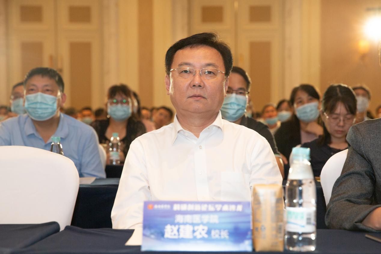 上海交通大学医学院陈国强院士、丁健青教授、海南医学院赵建农校长、张彩虹副校长出席会议,科技处、发展规划中心、衰老与肿瘤国际研究中心、基础医学与生命科学学院、药学院等二级学院、附属医院领导及科研人员代表参加会议。