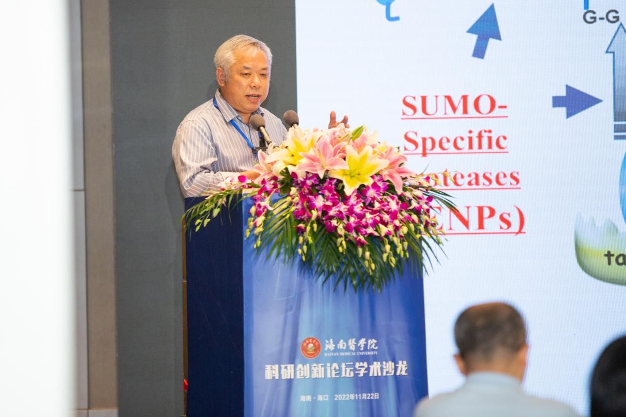 学术沙龙由海南医学院基础医学与生命科学学院朱海珍院长主持。上海交通大学医学院/上海市免疫学研究所苏冰教授、上海交通大学医学院程金科教授、华东师范大学刘明耀教授、海南医学院郭峻莉教授、海南医学院李其富教授在学术沙龙作了专业报告。