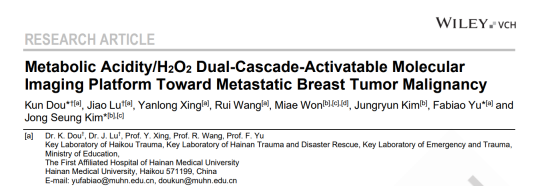 完整作者信息:Kun Dou*†[a], Jiao Lu†[a], Yanlong Xing[a], Rui Wang[a], Miae Won[b],[c],[d], Jungryun Kim[b], Fabiao Yu*[a] and Jong Seung Kim*[b],[c]