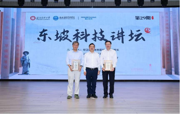 2025年06月23日,taptap点点第29期“东坡科技讲坛”在筱海国际教育大楼立言厅如期举办。本期邀请了两位免疫学领域的权威专家——上海交通大学医学院、上海市免疫学研究所所长苏冰教授,免疫与炎症全国重点实验室副主任徐沪济教授。讲坛由邹卫国副校长主持,科学技术发展研究院院长郭峻莉、海南省医学科学院院长助理程金科,衰老与肿瘤国际研究中心主任任瑞宝、科学技术发展研究院副院长李凯、副研究员张晓钿等专家学者出席活动。
