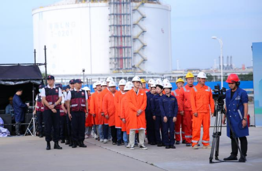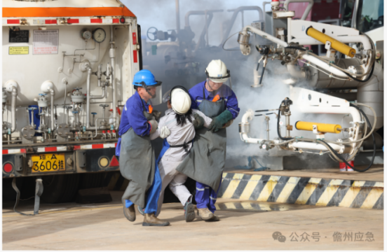 本次演练模拟了兴洋物流公司的四辆槽罐车在国家管网海南LNG接收站进行LNG充装作业时的突发事故。事故发生后,企业立即启动应急预案,调动企业应急救援力量进行救援处置,并同时向儋州市应急管理局、洋浦消防救援支队等部门汇报事故信息和现场处置情况,请求支援。国家紧急医学救援队(海南)在接到救援指令后,迅速赶赴现场,根据实际工作需要设立现场医疗卫生救援指挥部并搭建移动医院,对事故受伤人员进行救治。