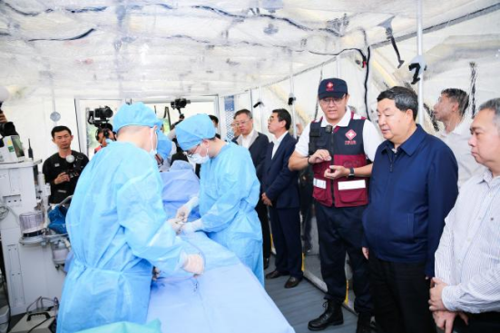 演练期间、曾昭长、肖谦等领导以及付小兵院士等专家团队观摩了移动医院,并给出了建设性意见。专家组对本次演练的成功举行表示高度的认可和热烈的祝贺。