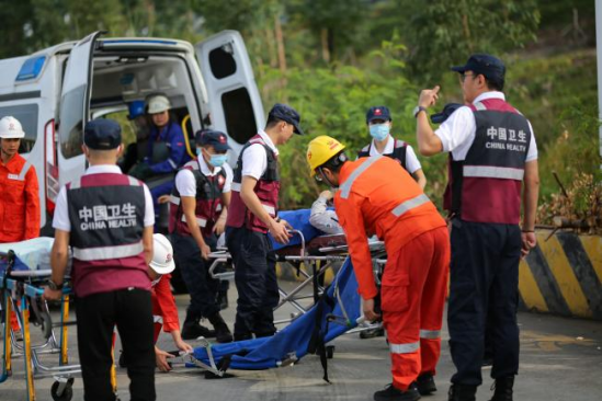为了提高海南国家卫生应急队伍在应对危化品事故的情况下,多部门联合综合搜、救能力,训练远程拉动、现场处置、联合救援和后勤保障能力,检验相关卫生应急救援预案和工作方案,展示卫生应急体系和能力建设成果,海南省卫生健康委员会于2024年12月8-11日召集国家紧急医学救援队(海南)全体人员在海南省儋州市洋浦经济开发区化工园区开展应对危化品事故卫生应急演练。