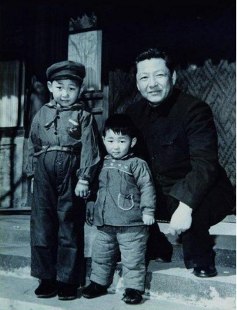 1958年,习仲勋与儿子习近平、习远平在一起。