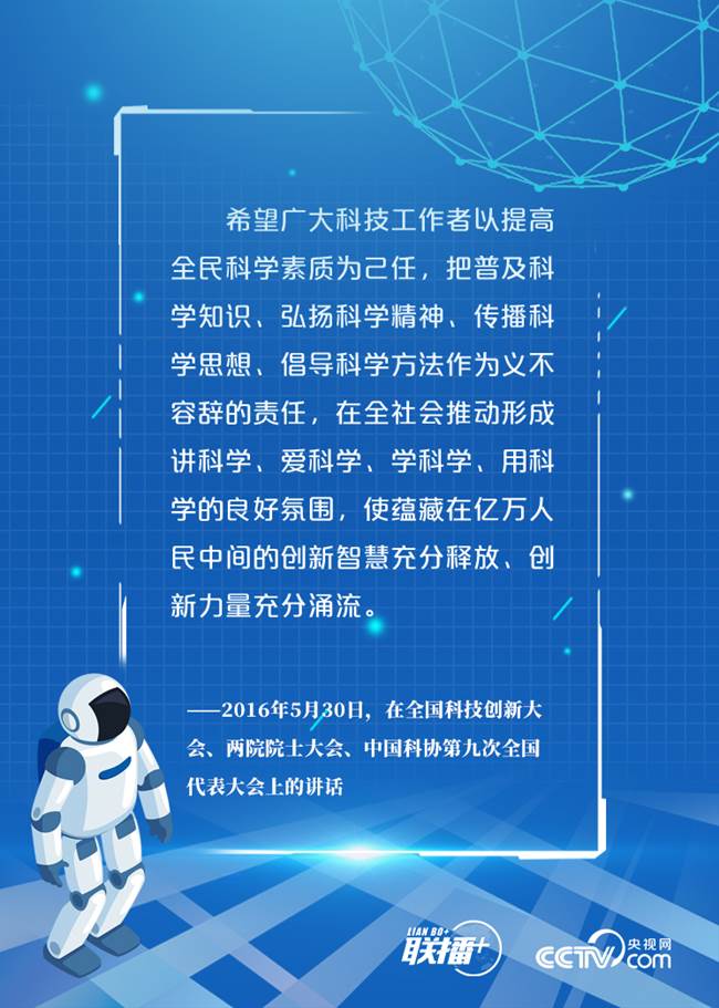 央视网特甄选习近平相关重要论述,与大家一起学习科技强国、科技创新、科学普及之间相辅相成、缺一不可的关系,打造好新时代创新发展的“科普之翼”。