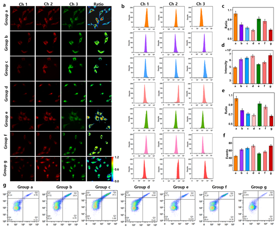 基于探针出色的检测性质,作者应用探针应用于细胞中的Sec的成像分析,并且评估了Sec 在炎症发生时的保护作用。结果证实探针Mito-Cy-Sec可以通过其NIR比率荧光响应检测细胞内Sec。细胞定位实验表明探针Mito-Cy-Sec可以有效的定位于线粒体中并能够检测到线粒体中的Sec。此外,我们的探针Mito-Cy-Sec和商业ROSGreen H2O2探针均用于检查细胞和小鼠模型中H2O2和Sec之间的相互关系。结果表明,H2O2和Sec之间的相关水平正好是负相关。Sec和H2O2的相关水平可以作为辅助诊断甲状腺疾病的诊断指标。