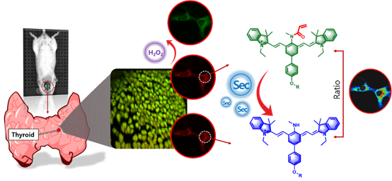 科研进展:用于检测甲状腺疾病硒代半胱氨酸含量变化的近红外比率荧光探针