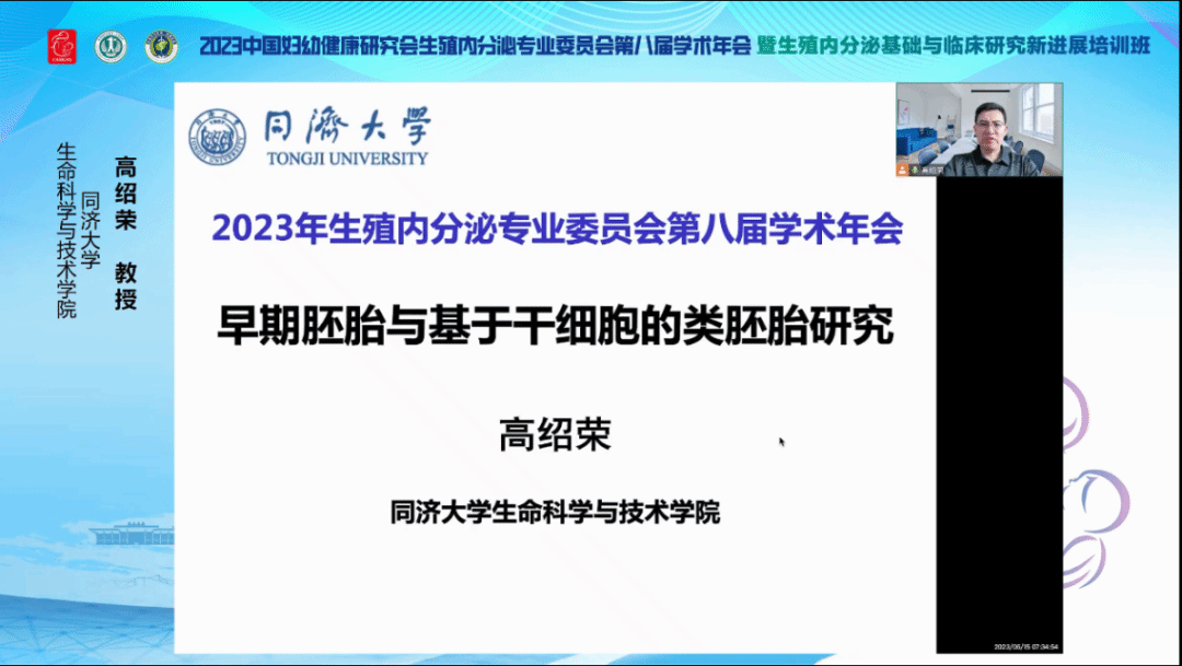 同济大学生命科学与技术学院高绍荣教授带来了以“早期胚胎与基于干细胞的类胚胎研究”为题的报告。首先,高教授简述了早期胚胎发育的表观遗传调控,紧接着,高教授提出了组蛋白修饰在小鼠和人类早期胚胎发育中发挥着重要的作用,克服表观遗传障碍可以极大地促进体细胞克隆胚胎的发育。随后,高教授详细阐述了RNA m6A调控早期胚胎发育的机制。最后,高教授提出了可利用干细胞在体外通过自组装构建功能性的内囊体,模拟人的早期着床后的发育,进一步观察重要的生物学事件。