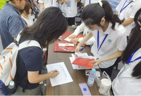 学院党委书记薛伟波、副处级辅导员李萌杰、学工办副主任陈妍老师、新生带班辅导员黄娇和符颖老师以及四大院级组织学生干部、新生助导共同在新生接待处值守,协助新生完成报道相关事宜并为每位新生送上学院专属纪念品。