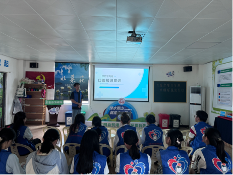 随后,在环保教育站会议室,大二的学长学姐进行了口腔健康知识宣讲。他们用生动形象的语言把专业的口腔知识传递给在场观众,耐心讲解了口腔癌的危害及预防和如何预防牙周病。同时,在场观众也从这次宣讲中真正学会了正确刷牙的方式。宣讲结束后,不少听众表示渴望了解更多的与口腔健康相关的知识。