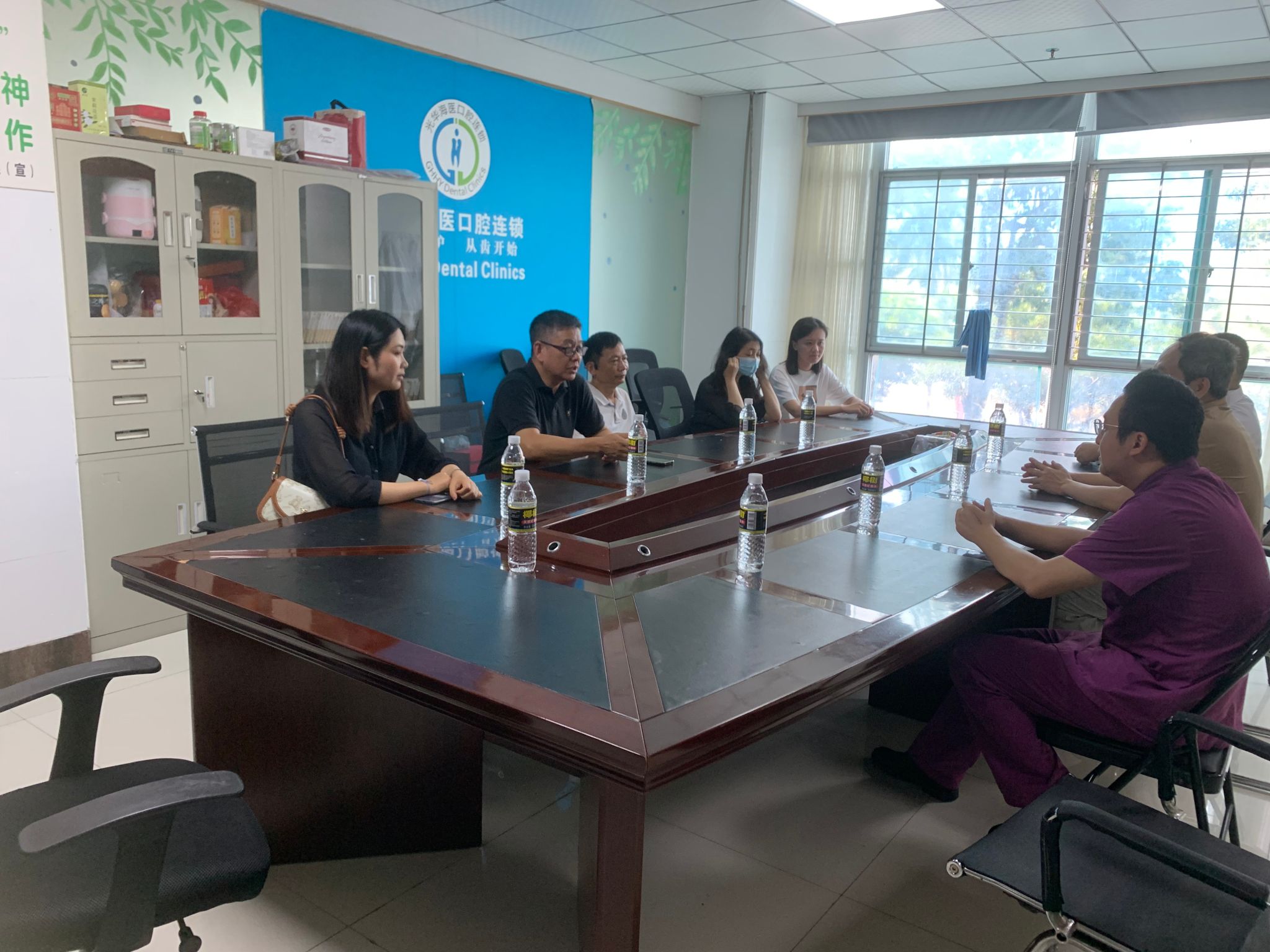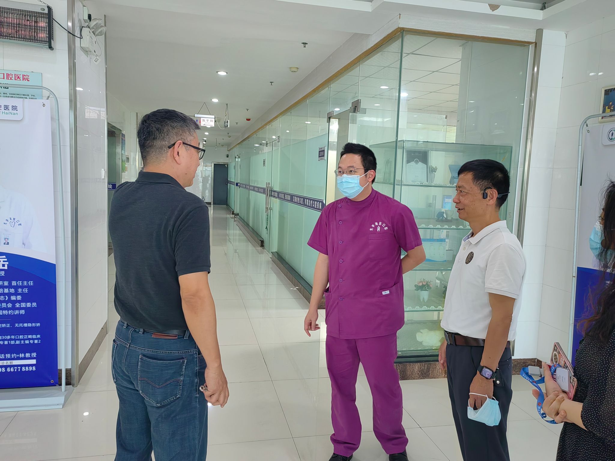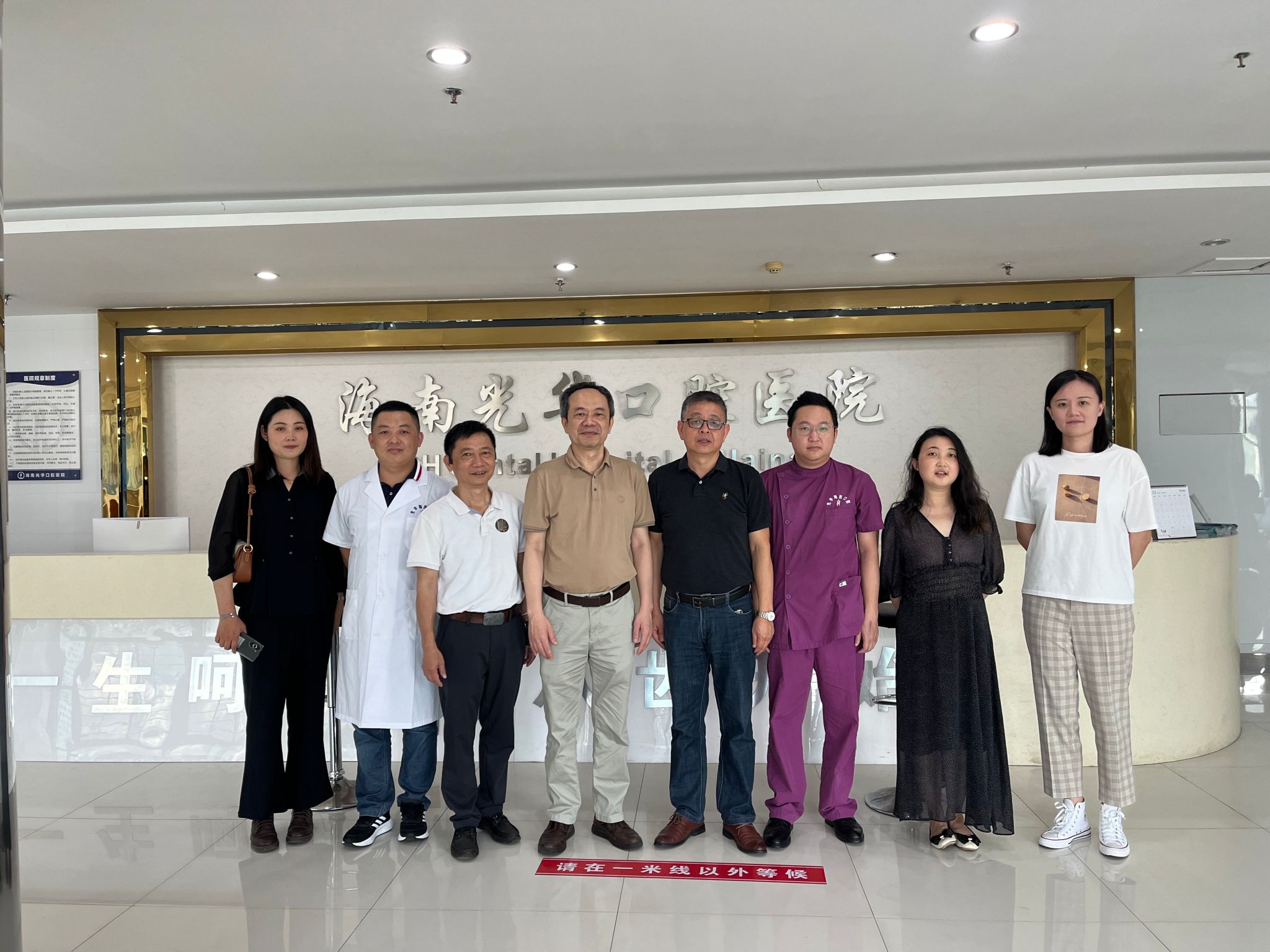 海南光华口腔医院林典岳院长、副院长赵凤杨及林金道等对调研团队的到来表示热烈欢迎并热情接待。林院长及两位副院长陪同调研团队参观了医院党建文化墙、牙科诊室等。