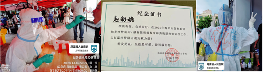 关键时刻显担当,危急时刻见境界。2022年8月1日,一个突如其来的本土确诊阳性病例打破了小岛的平静,我们可敬可畏的岛民立即组成抗疫队伍共克时艰。有责任有担当,青春才会闪闪发光,作为海南医学院2021级口腔医学研究生,我积极加入抗击疫情的队伍,为守护小岛贡献自己的一份力!病毒无情,人间有爱,但愿中秋月圆时,疫情不再!