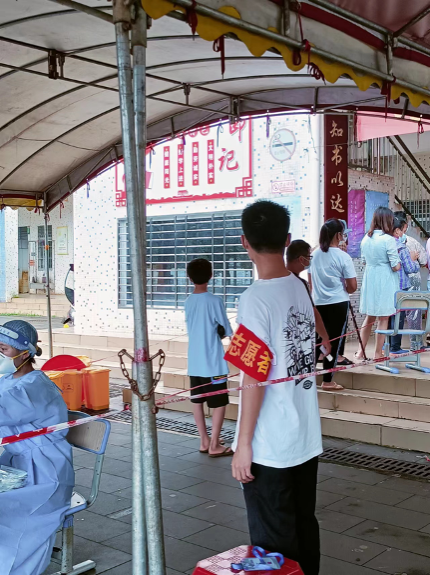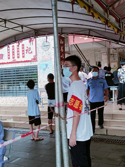 在这炎热的夏天里,虽然每一天汗流浃背,但是居民们都很支持与理解,非常配合参加核酸检测。星食茶老板,给我们防疫工作人员送来了免费的冷饮,冷饮虽冷,但是暖的是我们的心,人间自有真情在。这个假期,一场疫情,带来了灾难,也唤起了磅礴的力量。习近平总书记说过:“青春由磨砺而出彩,人生因奋斗而升华”,作为新时代的青年,我们用奋斗谱写青春,用青春致敬梦想。这一次的防疫志愿活动让我意识到青年人的责任与担当。作为一名共青团员、医学生,我将继续同广大青年一起努力,成为新时代的奋进者、开拓者、奉献者,让青春绽放不一样的光彩。