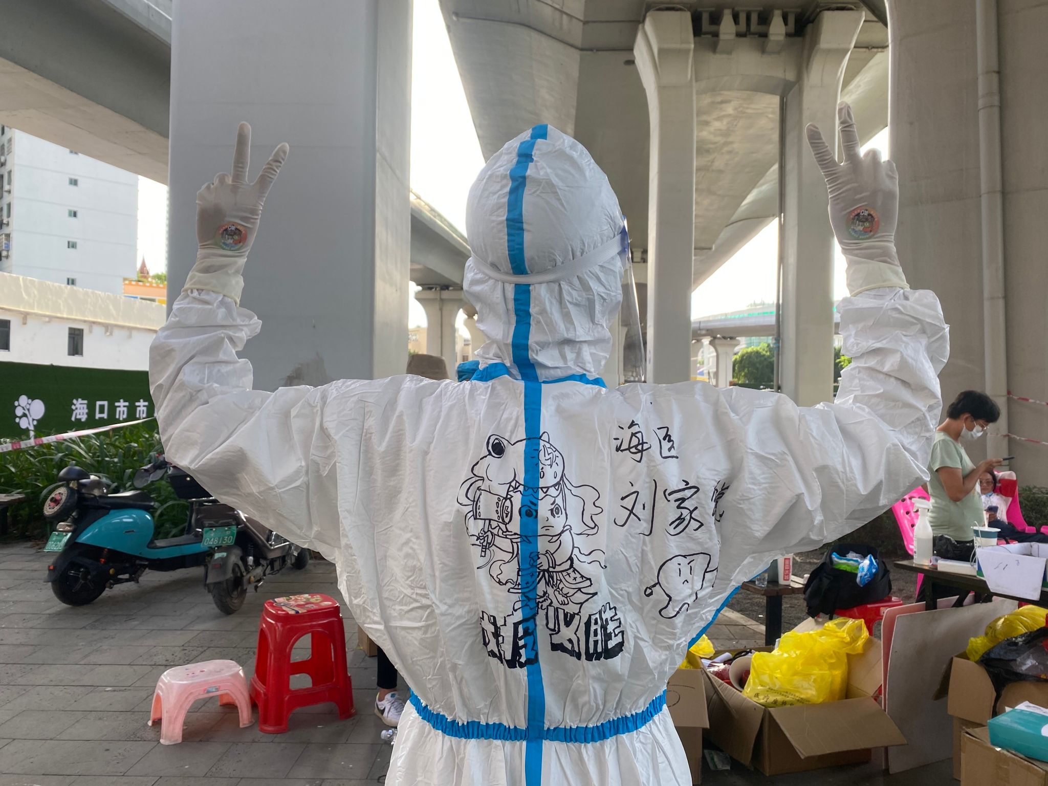疫情再次来势汹汹,看到抗疫志愿群的召唤,我闻令而动,即刻赶往儋州市疾控中心。在这里,志愿者们曾受夜晚困倦的袭扰,也曾受午后暴雨的肆虐。但多难兴邦,殷忧启圣,我们踏着荆棘,却不觉痛苦;山川异域,风月同天,全国各地医护人员前往海南支援,我们有泪可落,却不是悲凉。无论是簪缨缙绅、亦或是布衣青衫,铁肩担道义、丹心赴国难的英雄最受万众敬仰。相信飘风不终朝,骤雨不终日,我们共克时艰,终将会迎来山河无恙!