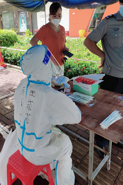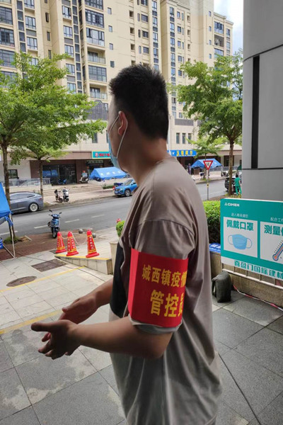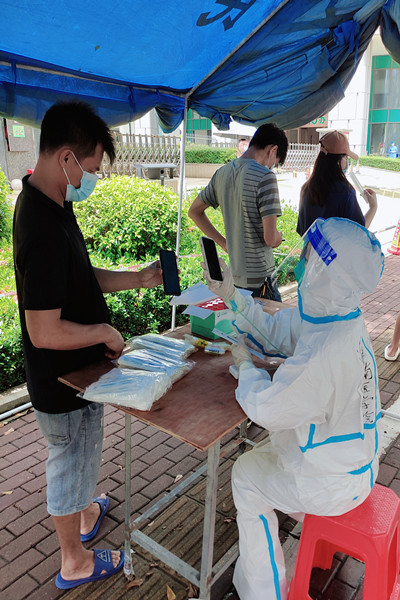胡旭承同学:作为一名青年志愿者,我们要服从安排,努力协助上级完成工作;作为一名退伍军人,我们更要身先士卒,奋勇前行。天微亮我们便出发领取整个检测点一天所需要的物资,搭建帐篷为辛劳的检测医生遮风挡雨,搬运冰块为“大白”们驱赶酷热,为每一位居民答疑解惑、解决问题。我相信如果我们每个人都能贡献出一份力量,那么没有什么难关是我们无法克服的!