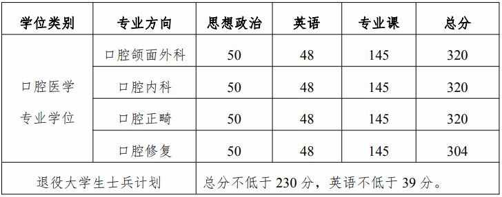 2024年口腔医学院硕士研究生招生复试,将在符合海南医学院公布的2024年全国硕士研究生招生考试进入复试的初试成绩基本要求的基础上,根据各个专业方向的招生人数及生源情况,我院2024年全国硕士研究生招生考试进入复试的初试成绩基本要求如下: