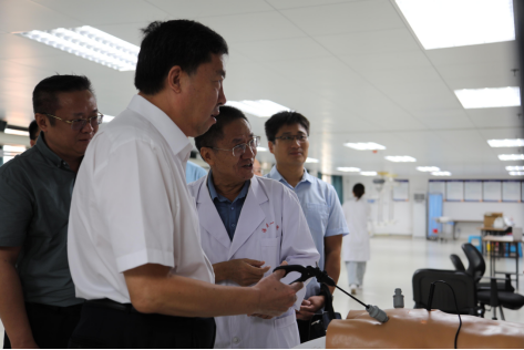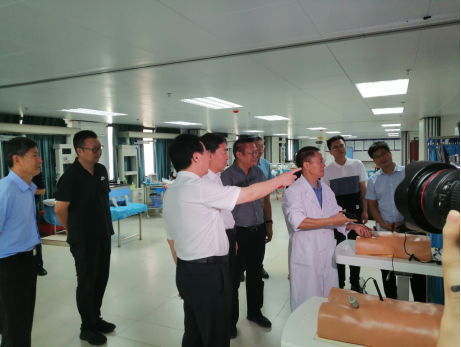 二0二一年十月十二日上午,海南省政协主席毛万春等领导一行在海南医学院杨俊书记、赵建农校长等领导的陪同下莅临海南医学院临床技能国家级实验教学示范中心指导工作。中心负责人孙早喜同志带领毛万春等领导参观了国家执业医师临床技能考试基地与考官培训基地,临床医学生及规范化培训学员临床技能教育培训功能区,诊断思维与腔镜微创虚拟实验室、高级仿真模拟实验室。毛万春主席指出,为了更好地服务于海南自由贸易港建设、服务于一带一路建设,要充分利用国家级实验教学示范中心,加强虚拟仿真实验室等相关实用性强的实验室建设,缩短医疗卫生人才教育培训时间、提升人才培养质量与医疗卫生服务能力,为一带一路与自贸港建设做出新贡献。