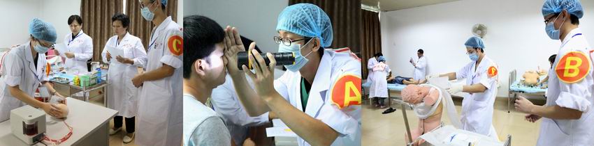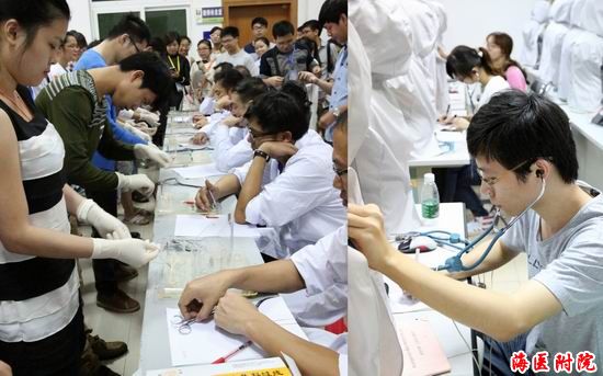 本次技能大赛考核了学生的临床操作能力,并全面体现了人文关怀、团队合作能力等医学生必备素质。综合知识竞赛内容涵盖内、外、妇、儿、急诊等理论知识和影像、心电图、化验结果判读。多站式比赛设8个站点,赛道式比赛设5个赛道,分别进行内科四大穿刺,外科消毒铺巾、切开缝合、骨折固定,妇、产科检查、诊刮,儿科小儿生长发育评定、新生儿复苏,静脉采血、导尿、综合抢救等内、外、妇、儿、急诊、护理技能操作。大赛别开生面,现场如火如荼。经过一天激烈、紧张地角逐,海南医学院附属医院2队勇夺桂冠,附属医院1队、附属人民医院1队获得大赛二等奖,海口市人民医院队获得大赛优秀组织奖,2010级临床本科④班柯益民、陈饶芳分别获得内科心肺听诊和外科打结擂台赛优胜奖。