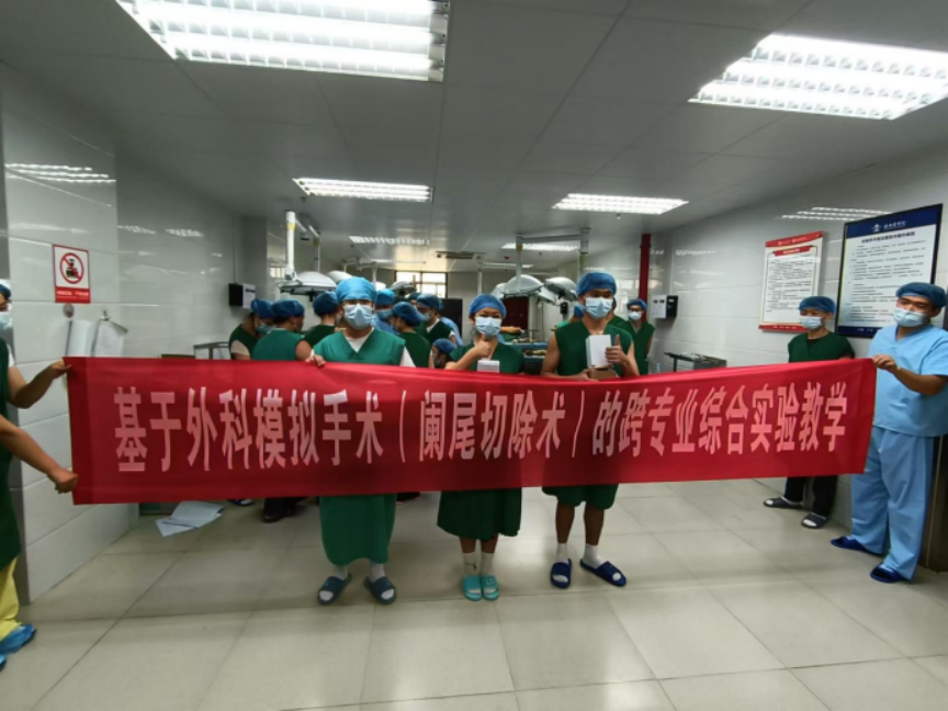 跨专业教育是指两种或两种以上专业(包括护理、临床、健康相关专业和社会工作)互相向对方学习以改善合作和服务质量的教育过程。为了增进不同专业间的了解和合作,2024年10月19日上午在临床技能实验教学中心二楼开展了基于外科模拟手术(阑尾切除术)的跨专业综合实验教学。本次跨专业综合实验教学由临床医学、护理学及麻醉医学三个专业的教师和学生共同参与。
